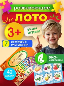 ЛОТО детское деревянное развивающие Растения, 7 карточек