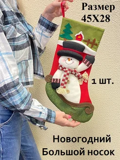 Новогодний большой носок для подарка и декора Снеговик