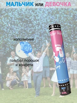 Хлопушка для гендер пати Холи и конфетти в голубом цвете