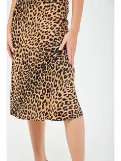 Юбка миди атласная леопард