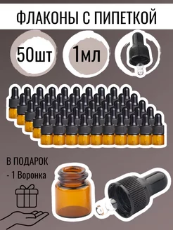 Стеклянный коричневый флакон 1 мл. с пипеткой - 50 шт