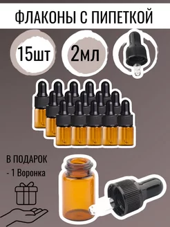Стеклянный коричневый флакон 2 мл. с пипеткой - 15 шт