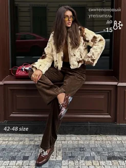 Шуба искусственная экошуба короткая коровий принт