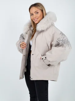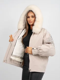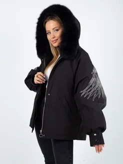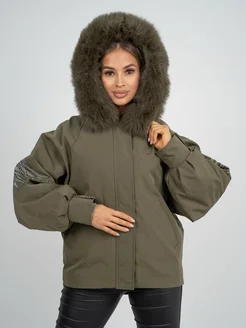 Куртка-бомбер с натуральным мехом оверсайз зимняя