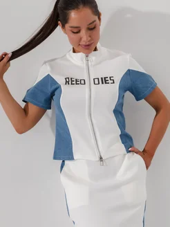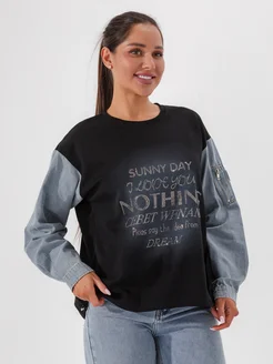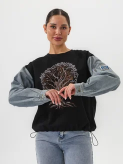 Свитшот оверсайз с джинсовыми рукавами