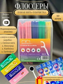 Зубочистки с зубной нитью - Флоссеры для зубов мята,клубника