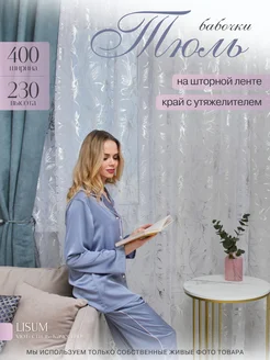 Тюль 400х230 готовый в спальню гостиную кухню с утяжелителем
