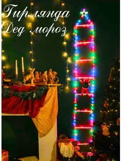 Новогодняя гирлянда Дед Мороз на лестнице 1.5 метра