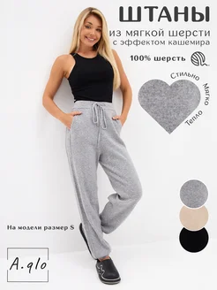 Штаны шерстяные джоггеры на резинке кашемировые серые