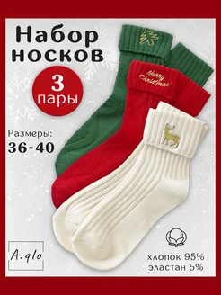 Носки новогодние теплые хлопок набор 3 пары Aqlo