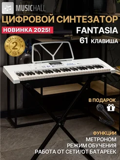 Синтезатор Fantasia 61 клавиша с микрофоном, белый