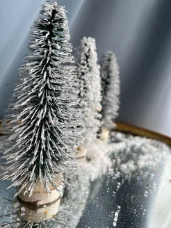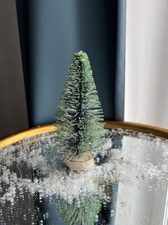 Мини Ёлка темно-зеленая в снегу настольная