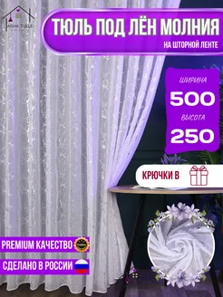 Тюль под лен-молния 500х250 см в гостиную и спальню длинная