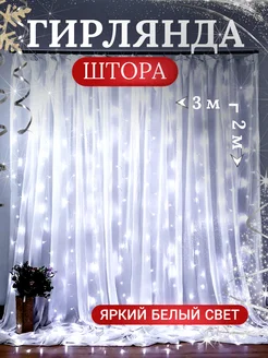 Гирлянда штора 3х2 белая новогодняя занавес на окно