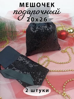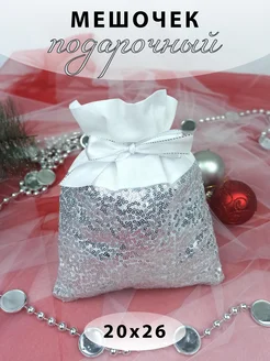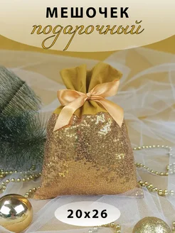 Мешочек подарочный Новогодний блестящий красивый 20х26