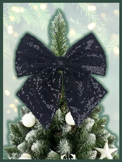 Бант на елку большой на верхушку новогодний черный декор