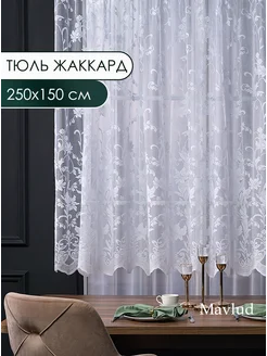 Тюль готовый 250х150 см короткий для кухни комнаты с узором