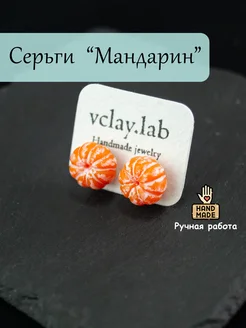 Серьги-гвоздики ручной работы Мандарин