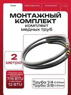 Готовый комплект медных труб для монтажа кондиционера 2м