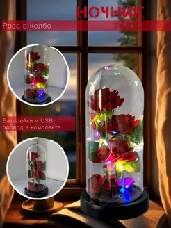 Ночник-подарок Роза в колбе с подсветкой