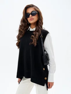 Жилетка вязаная на пуговицах удлиненная