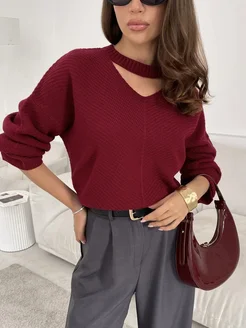 Свитер бордовый оверсайз вязаный с вырезом