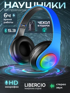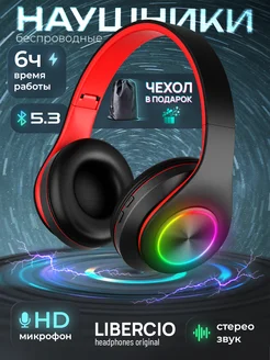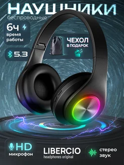 Наушники беспроводные большие с подсветкой блютуз чёрные