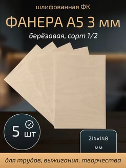 Фанера А5 для трудов и творчества 3 мм, 5 штуки