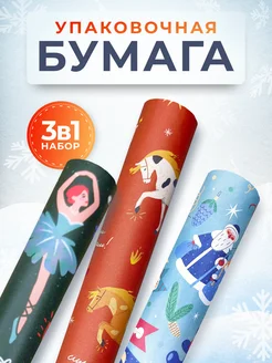Упаковочная бумага праздничная mix 3 набор 3 рулона