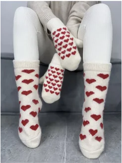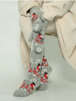 Комплект носки и варежки Зимние теплые вязаные шерстяные