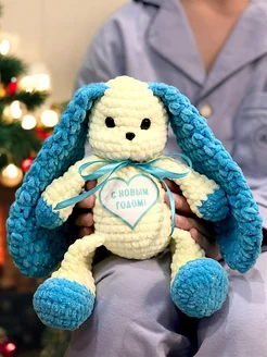 Плюшевая игрушка зайчик вязаный я люблю тебя