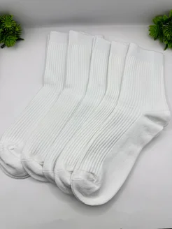Носки белые длинные рубчик набор 5шт