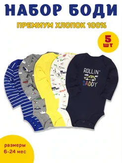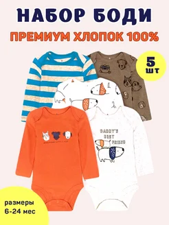 Боди для новорожденных с длинным рукавом,набор 5 штук