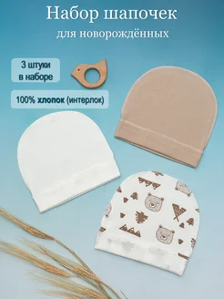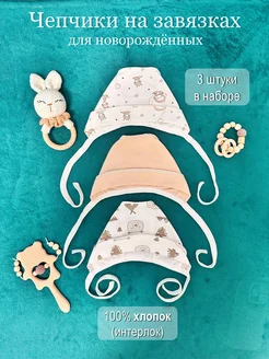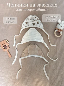 Шапочки чепчики для новорожденных и малышей 3 шт