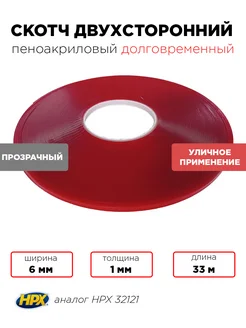 Акриловый скотч двусторонний прозрачный, 6 мм, толщина 1 мм