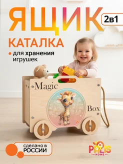 Ящик корзина для хранения игрушек на колесах Жираф
