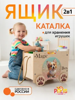 Ящик корзина для хранения игрушек на колесах Корги