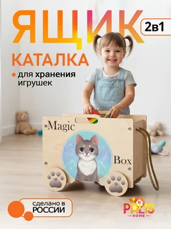 Ящик корзина для хранения игрушек на колесах Котенок
