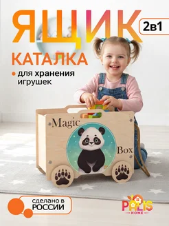 Ящик корзина для хранения игрушек на колесах Панда