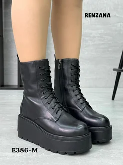 Демисезонные сапоги трубы с квадратным мысом на каблуке