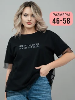 Футболка сетка черная оверсайз с надписью