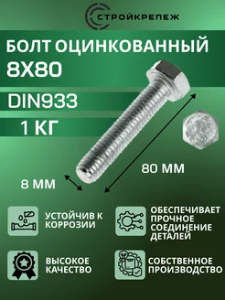 Болт оцинкованный DIN 933 8х80 мм 1 кг