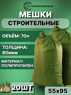 Мешки для строительного мусора зеленые 55х95 см 70 л 20 шт