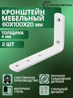 Кронштейн для полки держатель белый 60х100х20 мм 2 шт