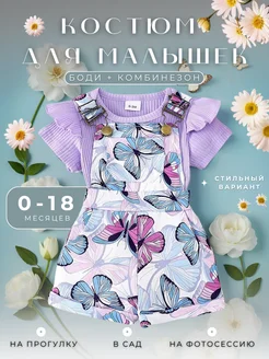 Костюм комбинезон с боди для новорожденных и малышей летний