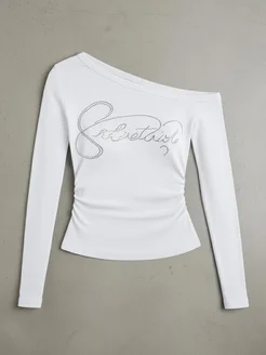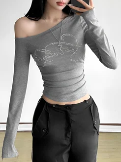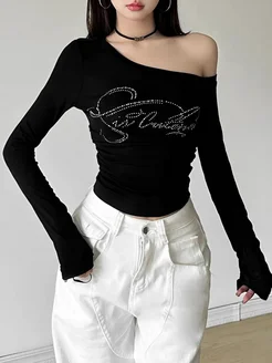 Лонгслив на одно плечо Y2K Нарядная кофта со стразами sk8