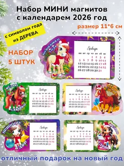 Деревянные магниты с календарем 2026 года Лошади 5шт