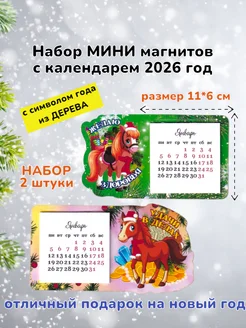 Деревянные магниты с календарем 2026 года Лошади 2шт