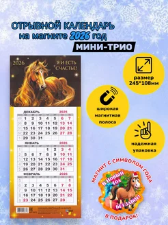 Магнит с календарем мини-трио 2026 года Лошадь