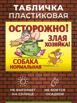 Табличка Осторожно злая хозяйка собака нормальная